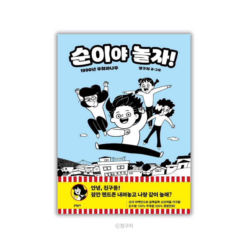 엄마 아빠와 함께 볼 수 있는 어린이 명랑만화~ 건전하게 재미난 만화를 찾으신다면 잘 오셨습니다! 《만화다반사》를 통해 제작 소식을 간간히 소개 드렸던 『순이야 놀자!』가 드디어 출간되었어요. 여러분 ‘방방’ 아시나요? ‘달고나’ 아시나요? ‘한의원 놀이’는요? 30년 전에 뭐하고 놀았는지 저도 잊고 있었는데요 (30년 전에 어린이였던 사람), 『순이야 놀자!』를 보면서 새록새록 떠올랐습니다. (참고로 저희 동네에서는 방방을 ‘퐁퐁이’라고 불렀답니다. 동네마다 부르는 이름이 달라요.) 추천사를 써주신 『어린이라는 세계』의 김소영 작가님께서 어른을 '선배 어린이'라고 표현해주셨거든요. 이 책을 통해서 많은 선후배 어린이들의 교류가 있었으면 좋겠어요. |