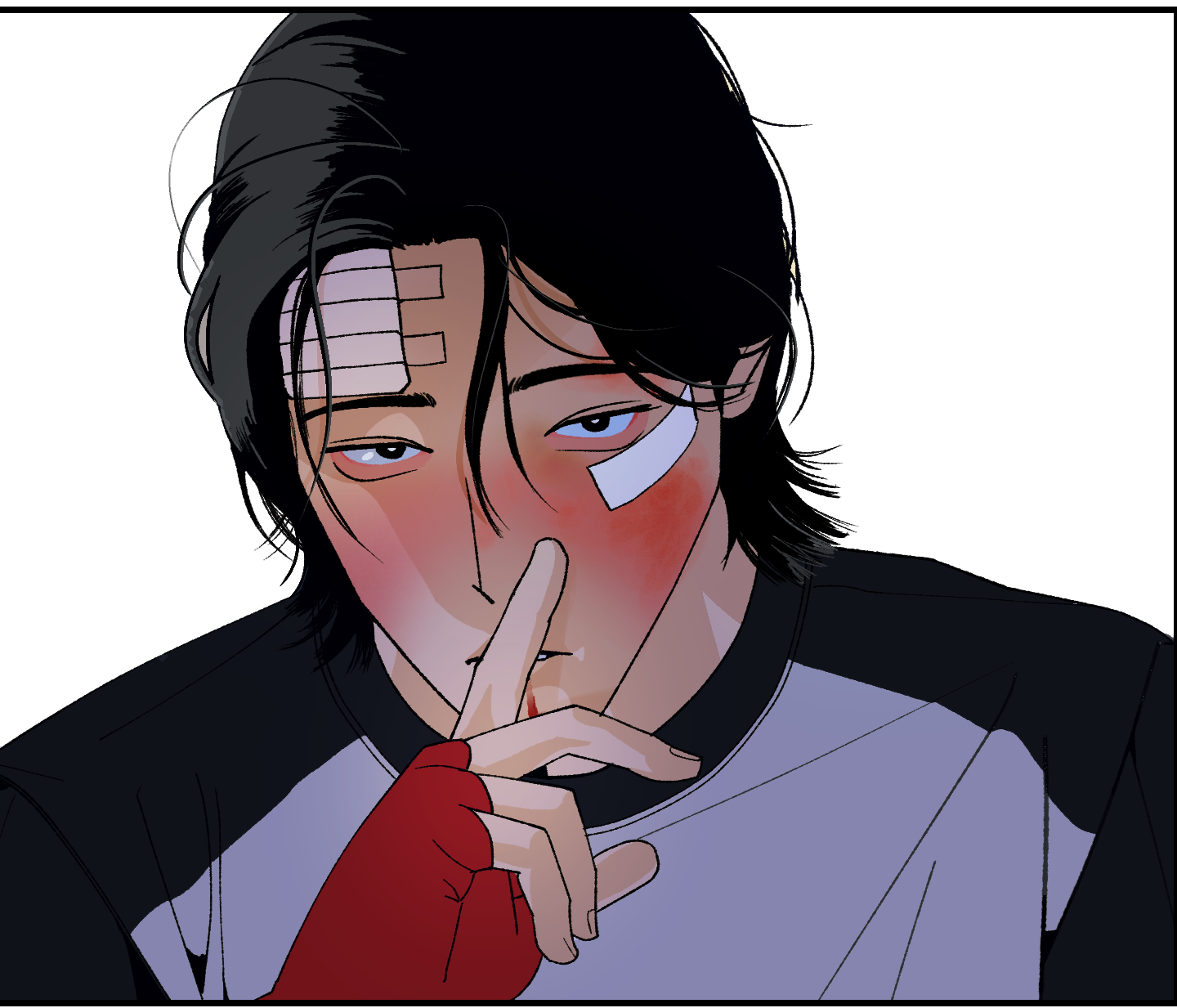 편집자: 살짝 이야기했지만 두 캐릭터 이야기를 좀더 하지 않을 수 없습니다. 안평화는 캐릭터 디자인부터 딱 ‘요즘 젊은이’라는 느낌이 나면서, 언뜻 홍콩영화의 비주얼도 생각납니다. 공(攻)이 수(受)한테 때려달라, 아니? 때리는 것도 아닙니다… ‘패달라’고 하는 웹툰은 정말… (없어서 못 먹죠) 쾌락을 위해 폭력을 바라는 마조히스트 공, 평화의 캐릭터는 어떻게 탄생했는지 궁금합니다. 혹시 영향받은 모델이 있을까요?