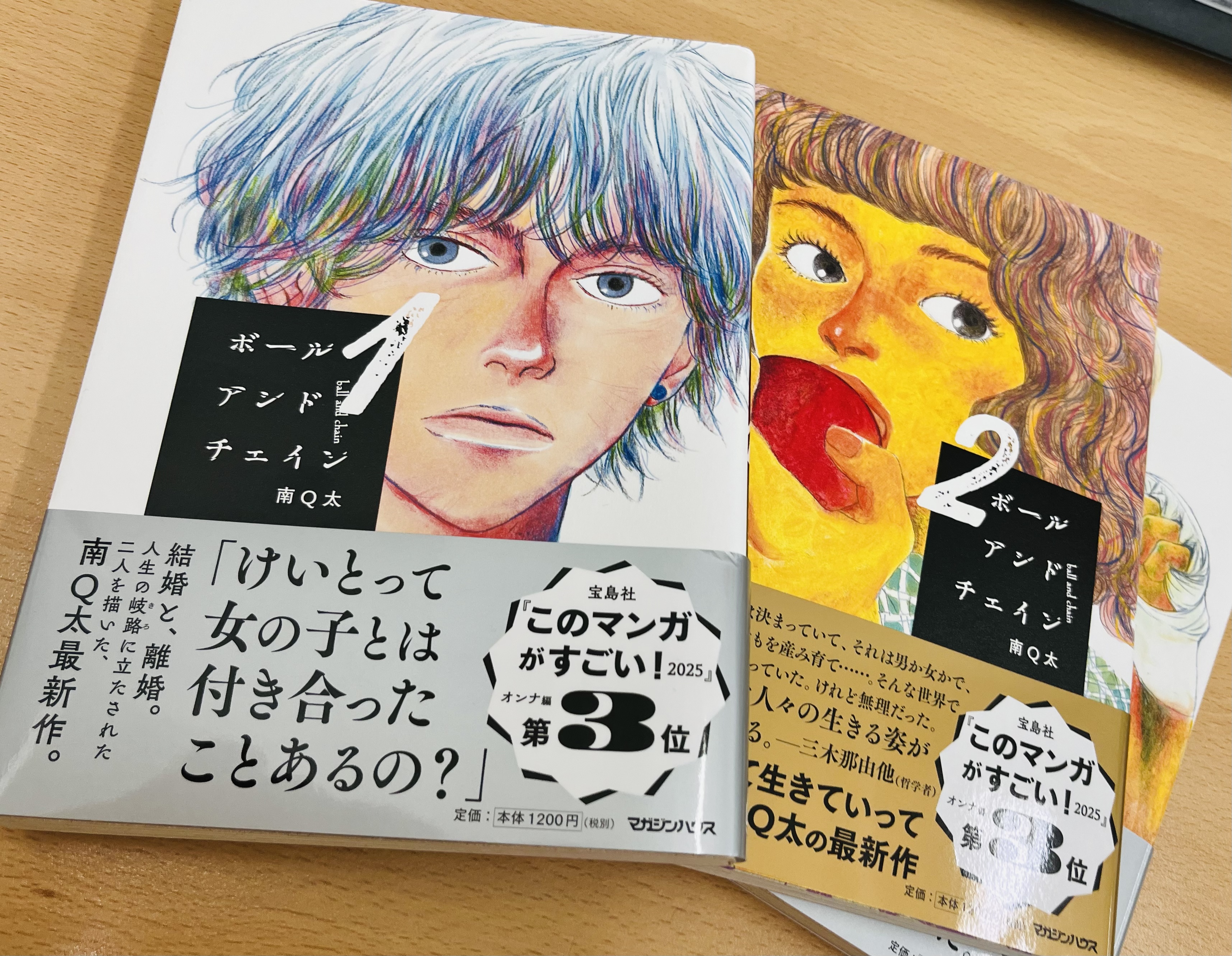 🍎A편집자: ‘미나미 Q타’를 아시나요?(a.k.a 미나미 큐타!) 우리나라에서는 『스쿠나 히코나』 『꿈의 온도』로 소개된 바 있는 순정만화 작가인데요. 내년엔 그분의 신작 『볼 앤 체인』을 출간할 예정입니다. 이 작품은 2025년 〈이 만화가 대단하다!〉 여성편 3위를 차지한 작품이기도 해요👏👏👏 주인공은 결혼을 앞두고 성정체성에 대해 고민하는 30대 여성 케이토와 지리한 결혼 생활 속에서 이혼을 고민하는 전업주부 아야입니다. 전혀 다른 삶을 살고 있는 두 여성이 각자의 위치에서 어떤 인생을 만들어나갈지, 두 사람의 이야기가 어떻게 교차할지 궁금해지는 작품이에요. 편집할수록 『볼 앤 체인』엔 작가의 영혼 조각이 많이 들어가 있단 생각이 들었어요. 케이토와 아야는 너무나 다른 캐릭터지만 각각 작가의 어느 한 부분을 딱 떼어와 빚은 것 같거든요. 그만큼 작가님이 애정을 쏟았다는 뜻이겠지요? 모쪼록 보시는 분들도 미나미 큐타 작가님의 영혼과 애정을 듬뿍 느낄 수 있도록 잘 만들어보겠습니다. 그럼 내년에 만나요!